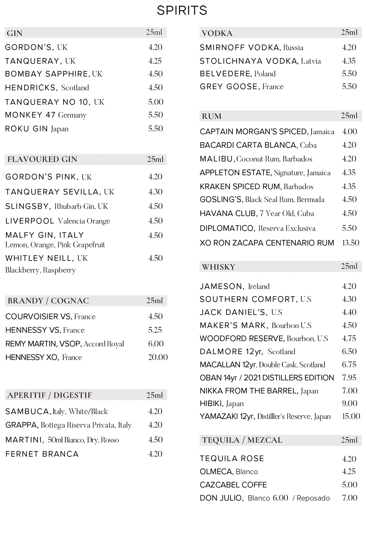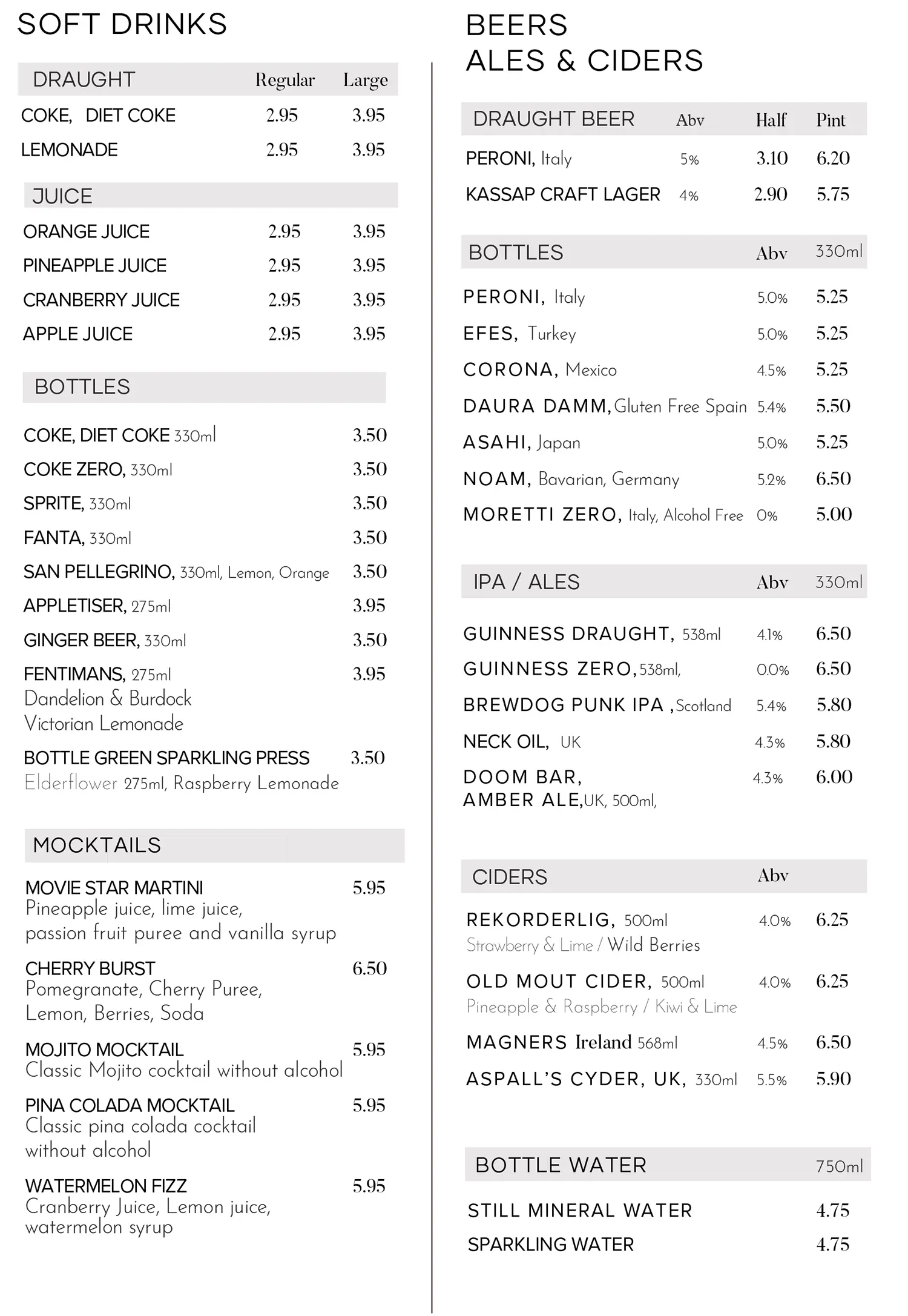Drinks Menu